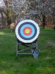Auf unserer Fita-Wiese stehen Scheiben von 10 bis 70 und ein paar 3D-Übungsziele